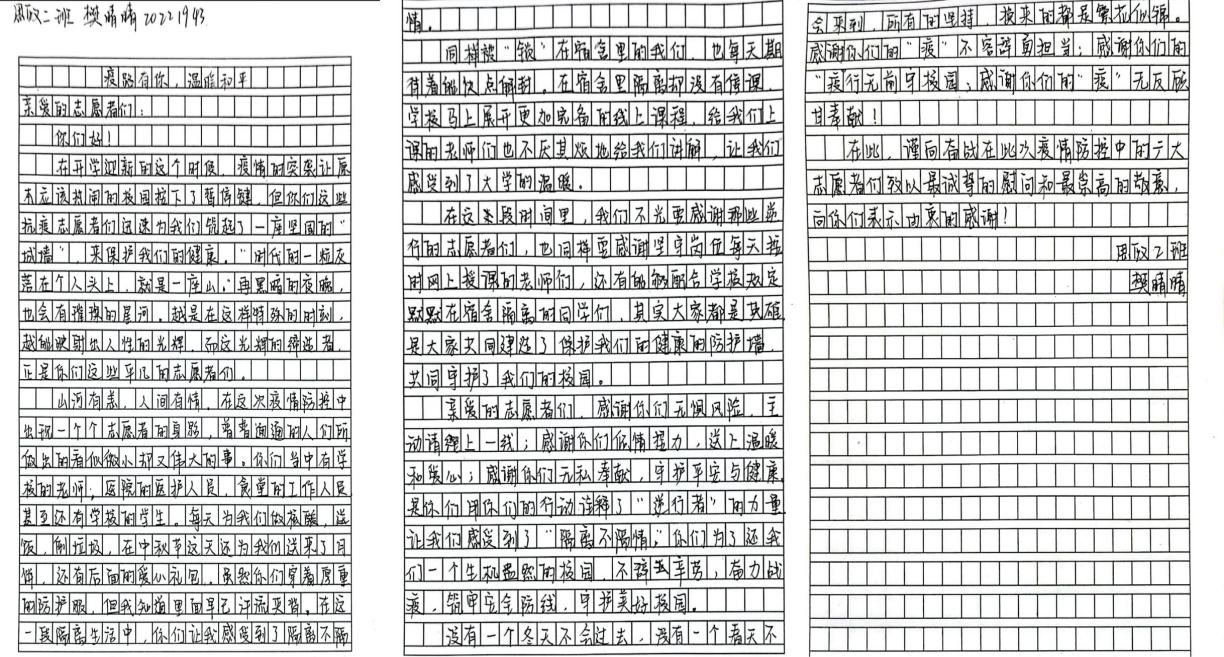 9月28日,williamhill官网举办了“疫路有你,温暖相行”写信活动。活动以写给防疫志愿者们一封信来进行开展,围绕此次志愿者们的辛勤付出,讲述志愿者们的感人故事,深情讴歌他们的自我奉献和抗疫精神。