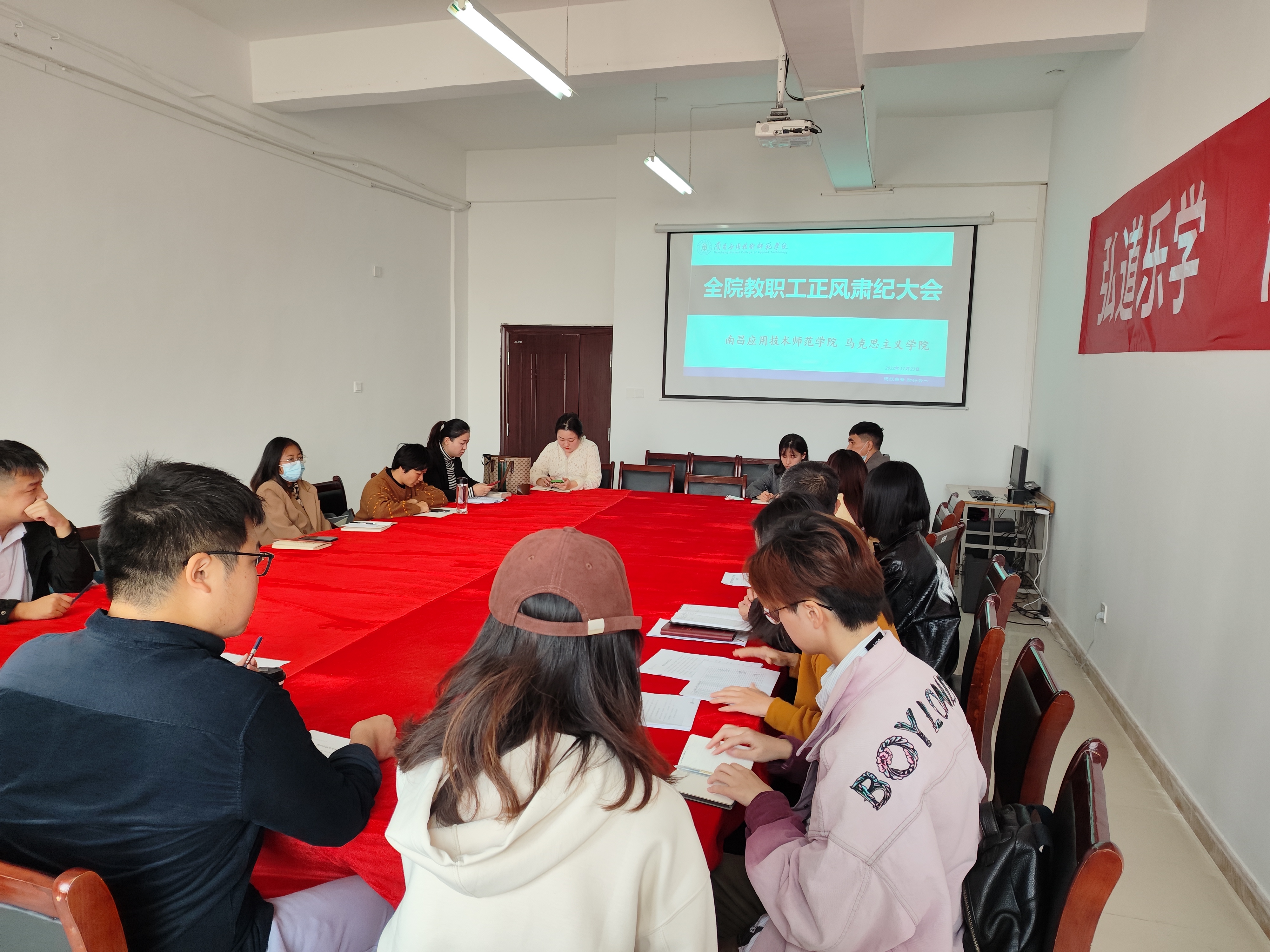 为进一步规范学院教职工的教学教学行为,加强教职工队伍的师德师风建设,按照学校对师德主题教育活动要求,williamhill中国官方网站在11月23日周三下午1点30分在1508会议室开展了全院教职工正风肃纪主题活动,活动由副院长卢林保主持。