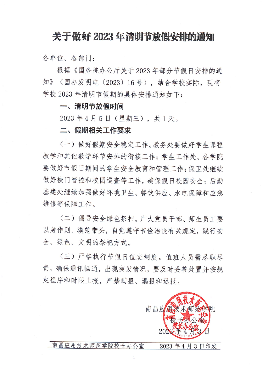 教学管理 学院新闻 学院公告 学院相册 您现在的位置是:首页 > 教学管理 > 学院公告 关于做好 2023 年清明节放假安排的通知 管理员2023-04-041837 上一篇 关于将朱子健等13位同志进行入党积极分子备案的报告
