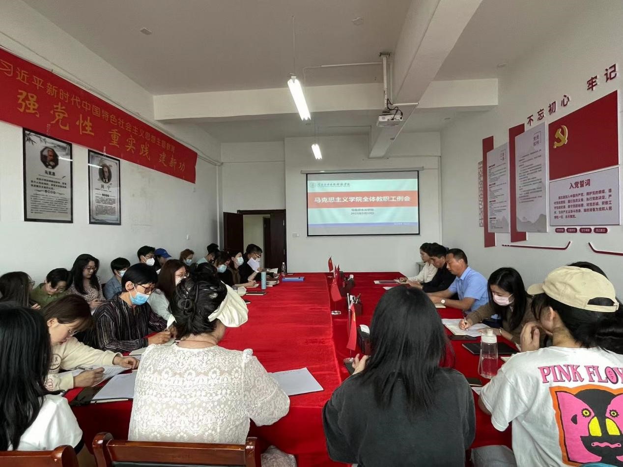 党总支副书记桂光泽就有关工作进行了部署,肯定了学院前期各项工作,并指出学院全体教职工要言传身教,提高自身素养,争做学生好榜样;提升工作实效,加强团队协作,多沟通多交流;提高责任意识,强教风,促学风,打造高质量马院教师队伍。