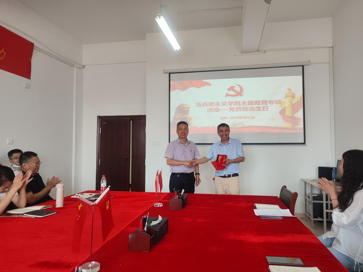 会上,过“政治生日”党员刘德彰同志带领大家重温了入党誓词,并结合个人成长中的重要节点和难忘事例,以及正在开展的主题教育,畅谈了入党以来不断坚定初心使命的心得体会。文道贵院长向刘德彰同志表达了祝贺,并颁发了贺卡。