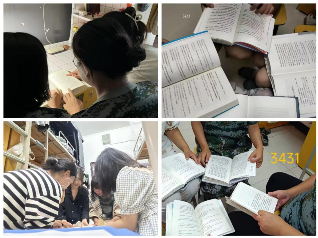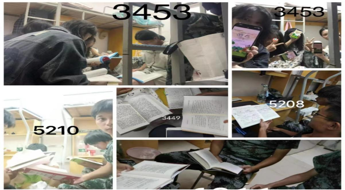 活动开始前,辅导员召开了线上班会,提出了开展宿舍读书会的建议,并得到了全班同学的一致认同。活动正式开始后,各寝室利用晚间军训时间,在宿舍展开了小型交流会。每个宿舍成员都向大家分享了自己最近正在阅读的书籍,并进行书单汇总。寝室长负责拍照记录,并在活动结束后将照片与交流记录提交至班长处。