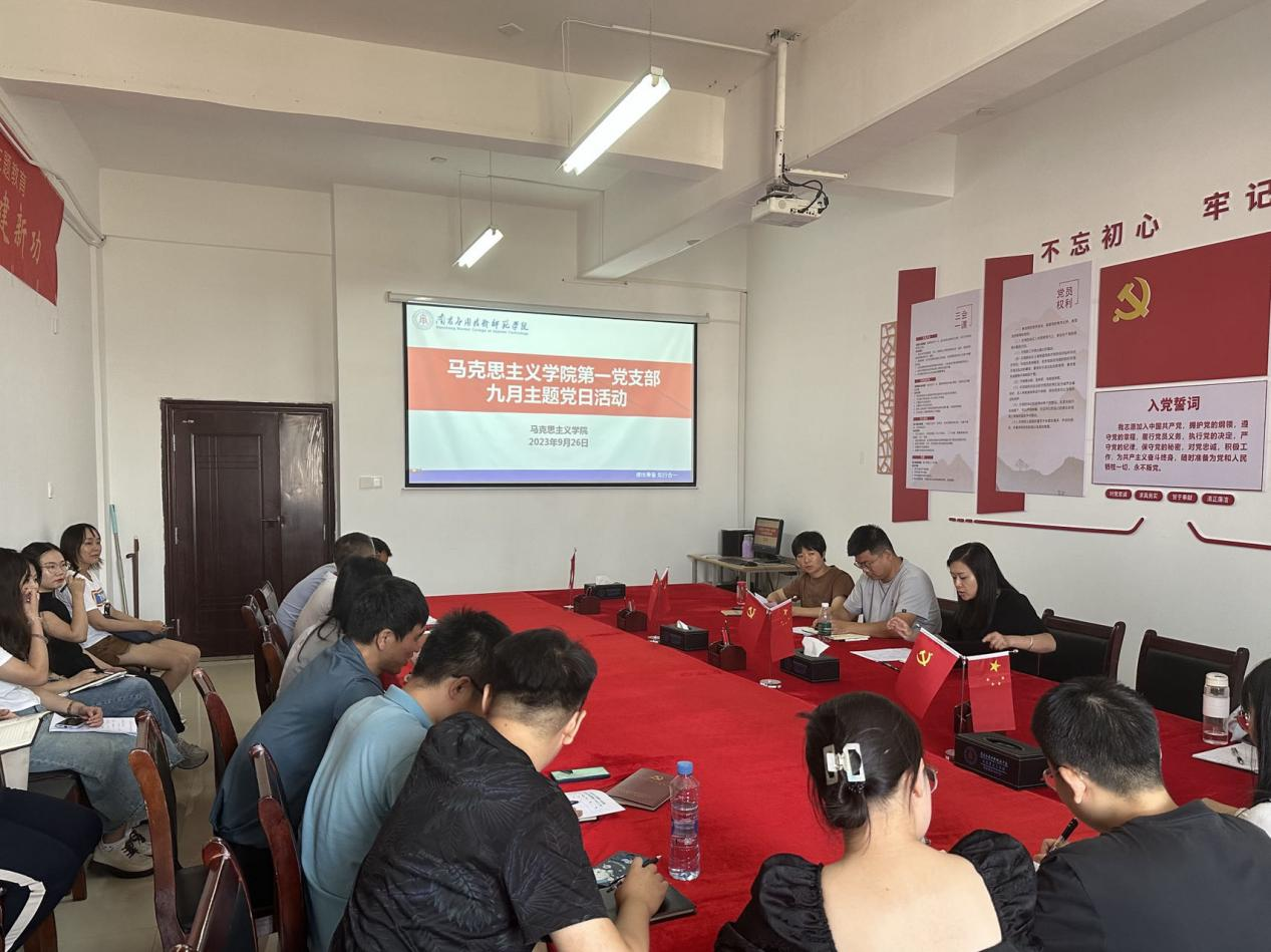 为充分激发党组织的凝聚力和战斗力,展现新时代新征程高质量教师队伍建设的突出成就和广大教师立德树人、自信自强的精神风貌,大力营造全党全社会尊师重教的良好氛围,我支部于9月26日下午开展以“赓续百年初心,担当教育使命”为主题的党日活动。院长文道贵、党总支书记张欣康、党总支副书记李婷、副院长张丹及全体教职工党员参与活动。活动由李婷同志主持。