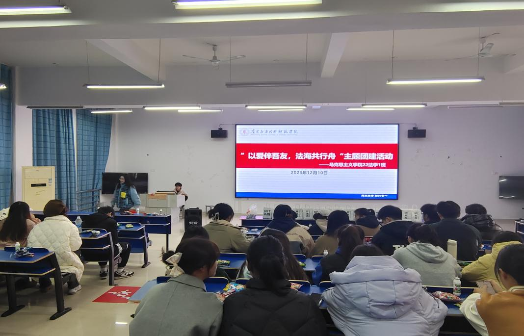 2023年12月10日,为了解师生诉求,征集发展建议,夯实群众基础,为即将召开的学校第一次党员大会营造平安和谐的环境,williamhill中国官方网站22法学一班开展了“以爱伴吾友,法海共行舟”为主题的班级团建活动,辅导员吴昱杉出席活动。通过开展此次团建活动,增强了班级集体意识,营造积极向上、团结友爱的班级文化氛围,激发了同学们对学习、生活的热情,绽放了青春活力。