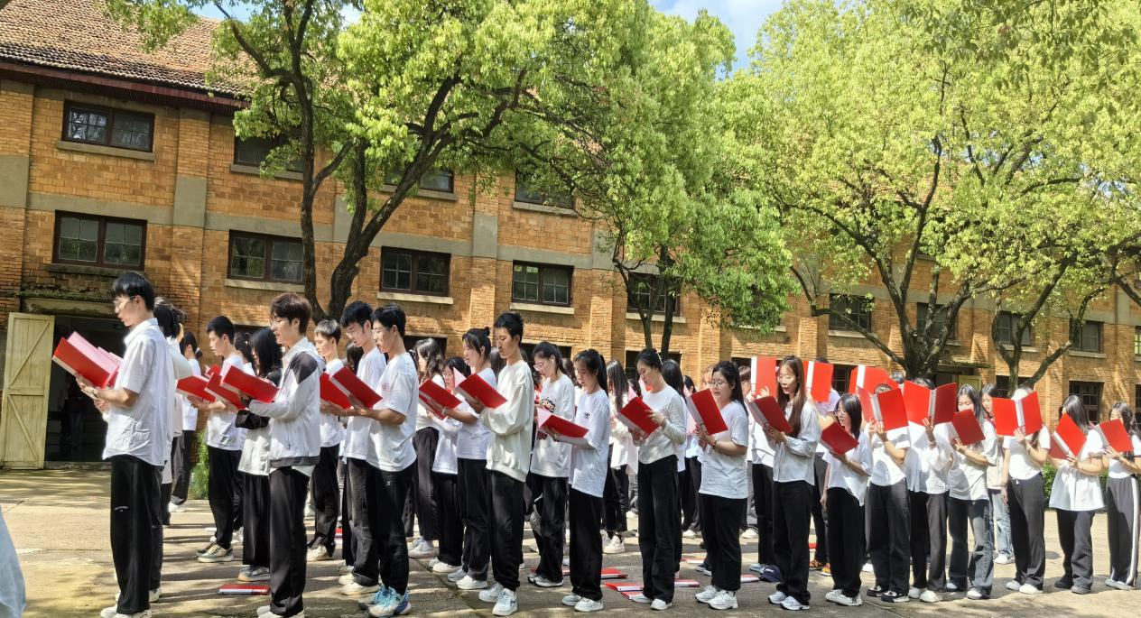 在主持人的带领下,同学们站在洒满阳光的邓小平同志雕像前大声诵读《小平,您好》,表达了对小平同志的无限敬仰和怀念之情。青春的声音穿越历史长河,展现出同学们对理想的坚定、对信念的坚守,对中国共产党、对伟大祖国的热爱。