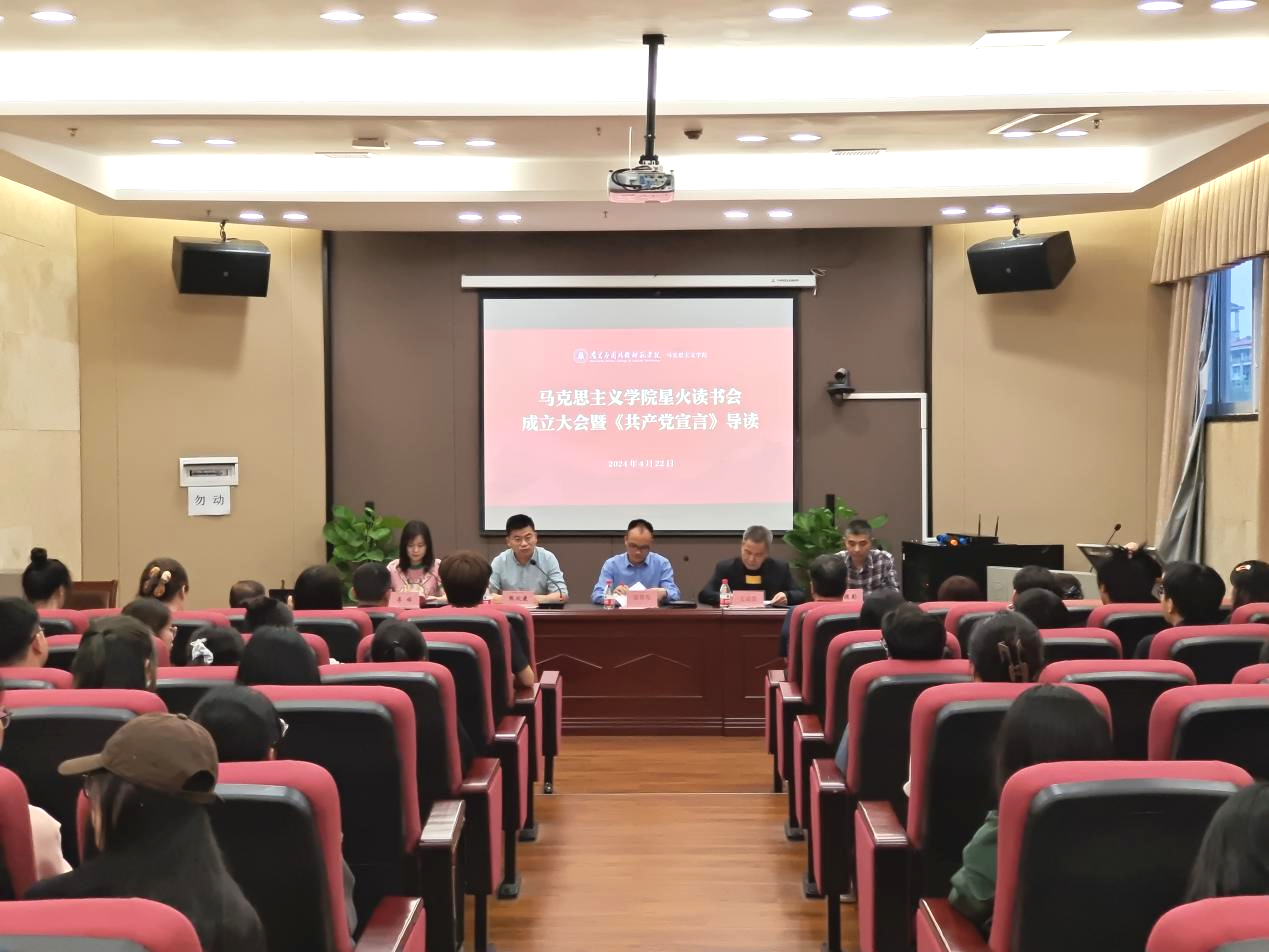为响应国家关于全民阅读、终身学习的号召,引导广大青年在读书中感悟书籍智慧,汲取奋进力量。4月22日,在世界读书日即将来临之际,马克思主义学院“星火”读书会成立大会暨《共产党宣言》导读会议在行政中心第二会议室举行。校党委副书记蓝贤发、williamhill中国官方网站院长文道贵、副院长刘德彰、党总支副书记李婷及出席会议。“星火”读书会指导老师、“星火”宣讲团成员、“星火”读书会成员、williamhill中国官方网站团总支学生会全体成员参加会议,会议由党总支书记张欣康主持。