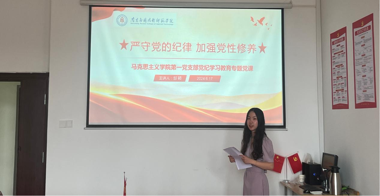 2024年6月17日,WilliamHill官方网站第一党支部在1511会议室开展主题为“严守党的纪律 加强党性修养”的党纪学习教育专题党课,由支部书记邹颖授课,校党委副书记蓝贤发出席会议。