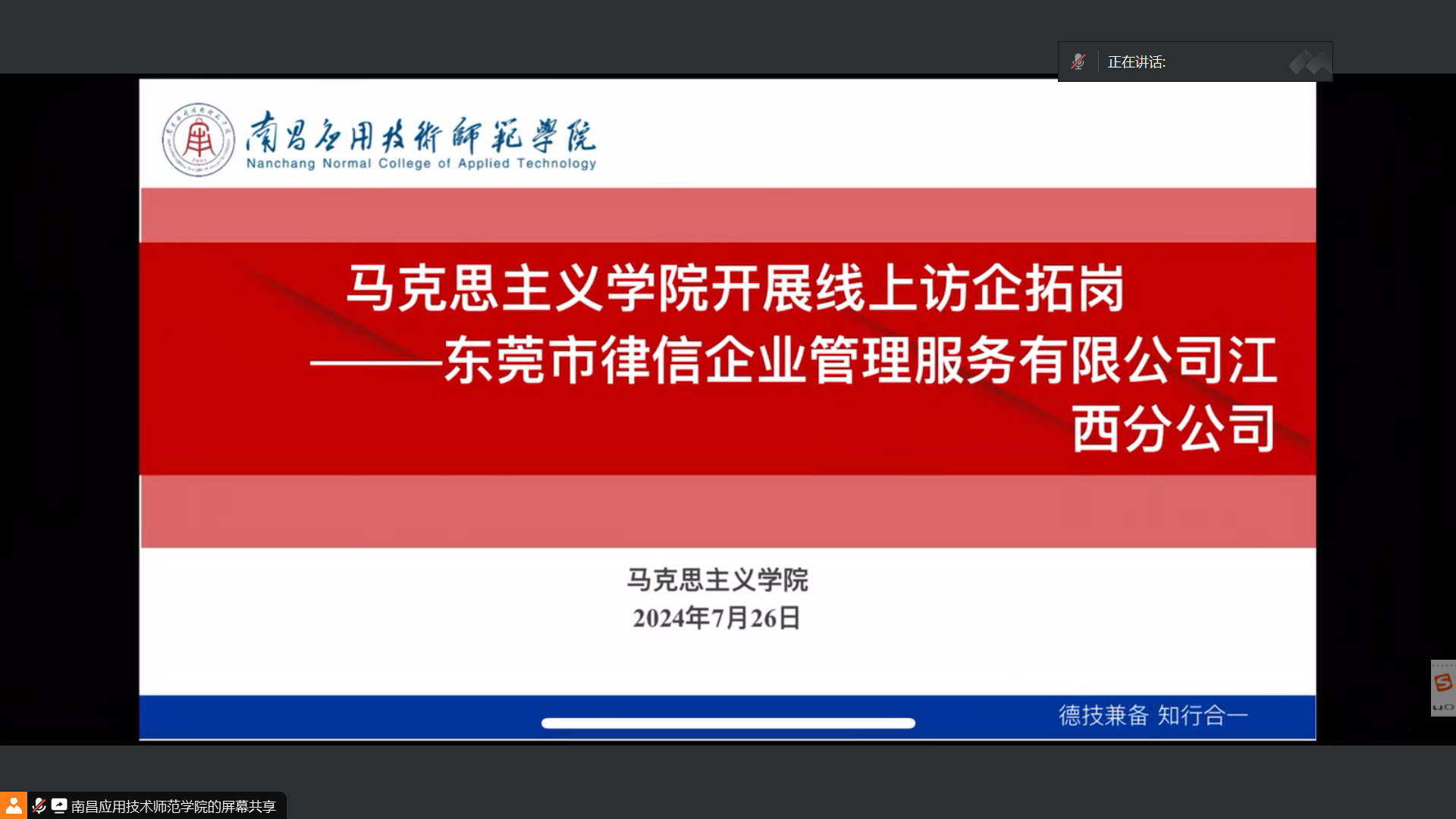 为进一步拓宽毕业生就业渠道,加强校企合作,促进学生高质量就业,williamhill中国官方网站于2024年7月26日通过视频会议的方式与东莞市律信企业管理服务有限公司江西分公司开展了线上访企拓岗活动。