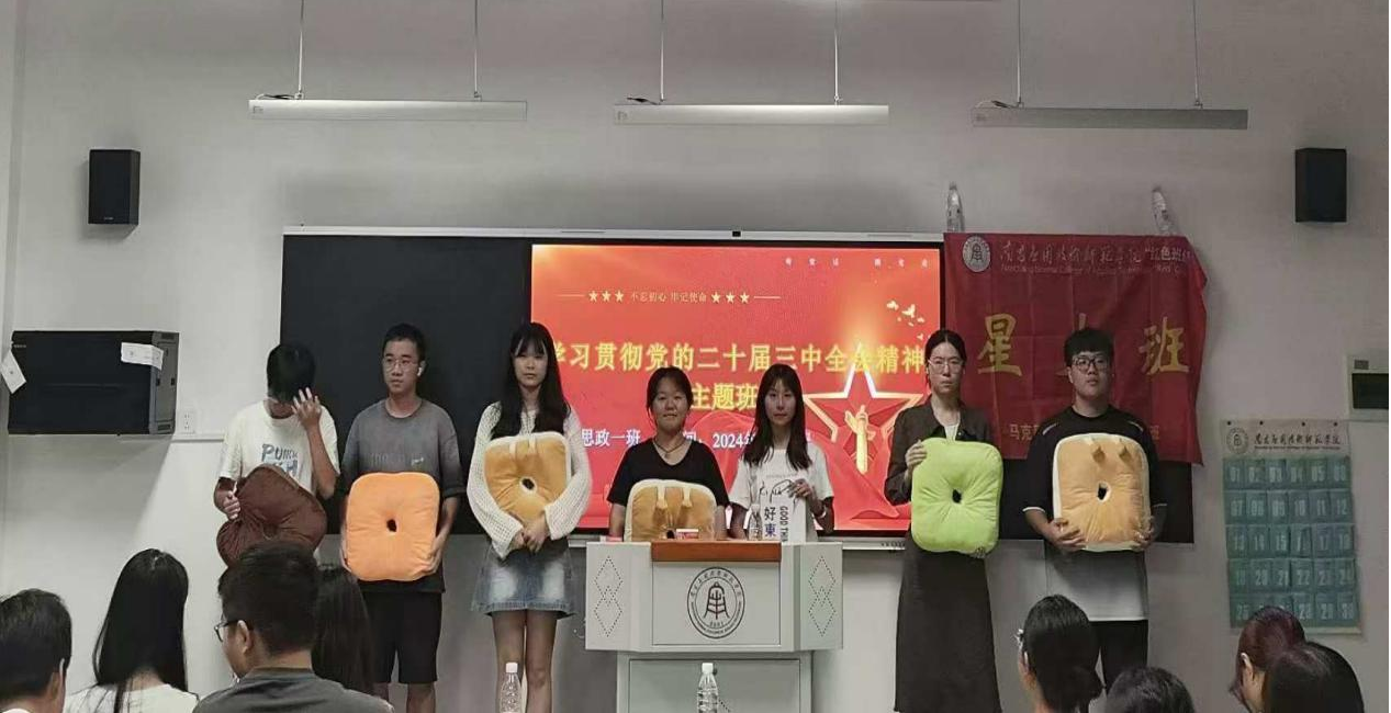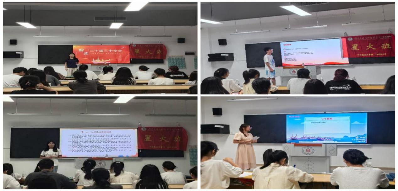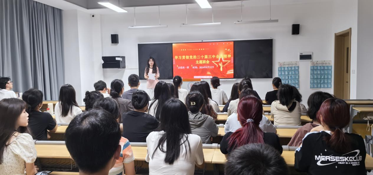 最后,郯良星同学对主题班会进行了总结,她鼓励大家要将党的二十届三中全会精神内化于心,外化于形,把自己的理想同祖国的发展需要紧密结合。此次班会的成功举办,不仅加深了同学们对党的二十届三中全会精神的理解和认识,也激发了大家投身新时代中国特色社会主义事业的热情和信心。同学们纷纷表示,将以此次班会为契机,进一步加强学习、锤炼本领、勇于担当、积极作为,为实现中华民族伟大复兴的中国梦贡献自己的青春力量。(图文/谢涛 初审/邹颖 复审/张欣康 终审/文道贵)
