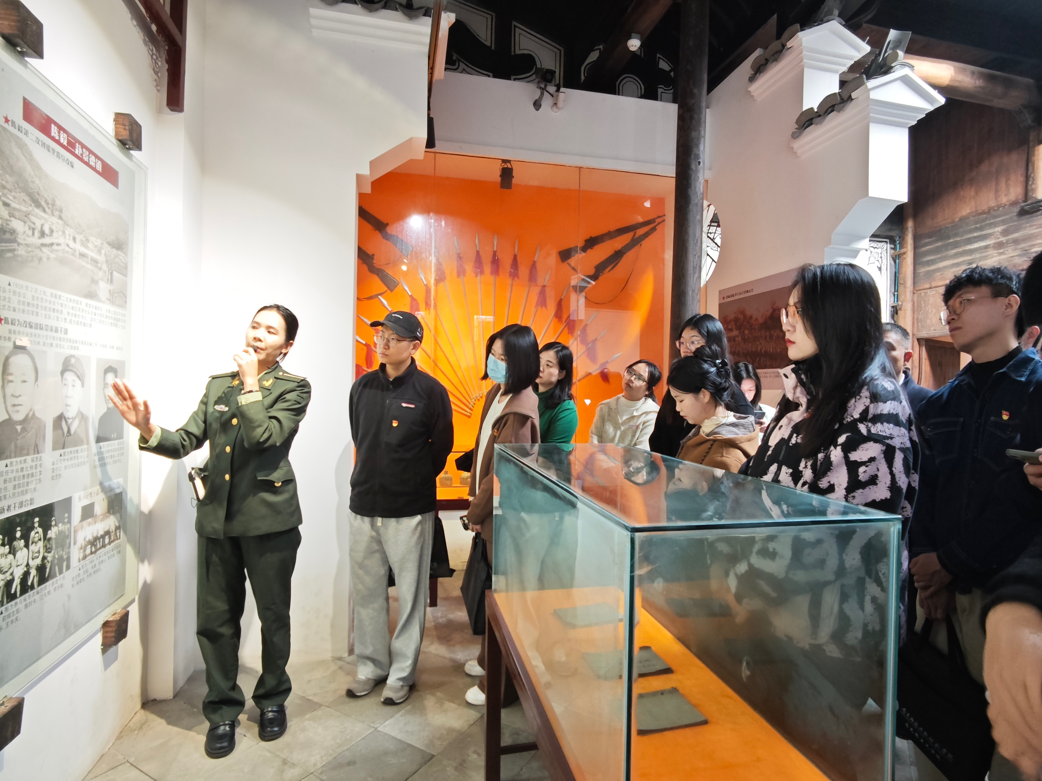 在新四军瑶里改编历史展示馆,党员们通过一件件实物、一份份史料、一张张图片,重温了中国共产党领导广大人民群众进行艰苦卓绝的革命斗争历史,深入了解了新四军瑶里改编的历史背景和重要意义。这幅场景仿佛将党员们带入了皖浙赣三年游击战争的烽火岁月,感受了革命斗争胜利来之不易,铭记了新四军所走过的光辉历程。