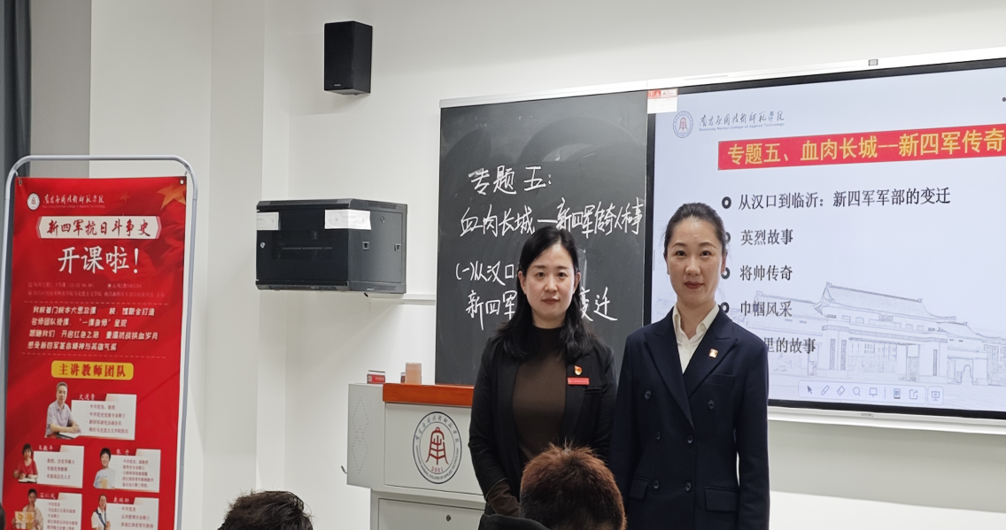 这次授课,虽然是课堂室内教学,但是两位老师运用了大量的鲜活的历史素材和生动形象的语言,让学生足不出户也能“云游”新四军各个军部旧址,探寻其背后的历史,仿佛亲身见证了革命先烈的英雄事迹。本课程是我校大思政课程教学形式创新的又一次尝试,得到了听课同学的好评。(文/石仁凤,图/王敬平,审核/文道贵)