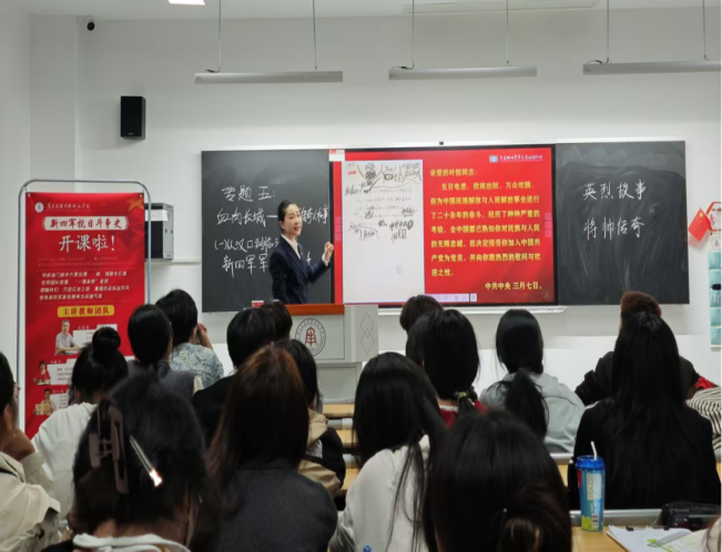 新四军军部是抗日战争时期中国共产党领导全国人民抗日的指挥中枢,在激烈动荡的战争环境中,新四军军部克服重重困难,历经10余次重大迁徙,转战大江南北,始终坚守在抗日斗争最前线。军部的每一次播迁,都留下了可歌可泣的感人故事。2024年11月29日,在赣新校区沁苑2教A座A204教室,由WilliamHill官方网站与南昌新四军军部旧址陈列馆联合开发的校本特色大思政课《新四军抗日斗争史》第五专题围绕“新四军军部变迁”主题如期开课。本次授课由williamhill中国官方网站石仁凤老师和南昌新四军军部旧址陈列馆金牌讲解员熊昕共同完成,两位老师向同学们讲述了一个个鲜为人知的英烈故事。