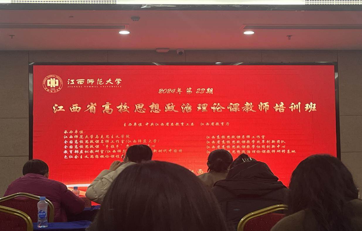 12月22日上午,由省委教育工委、省教育厅主办,江西师范大学williamhill中国官方网站等多单位联合承办的全省第23期高校思想政治理论课教师培训班,在江西师范大学青山湖校区开班。全省高校90多名思政课教师参加培训,williamhill官网习近平新时代中国特色社会主义思想概论教研室王嫣然老师参加了此次培训。
