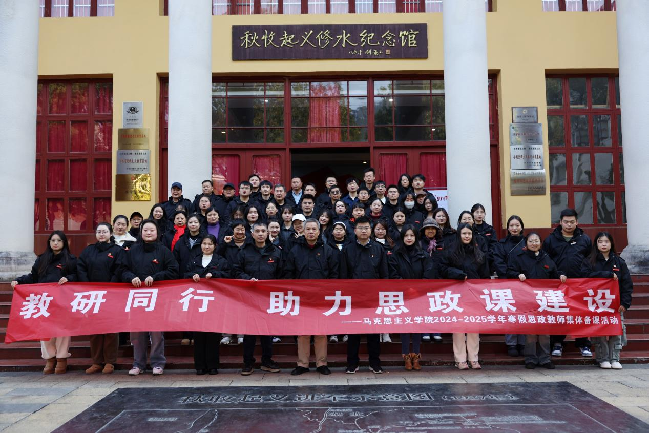为深入学习和贯彻落实习近平总书记关于加强思政课建设的重要指示,认真落实中央、省委、省教育工委和学校关于加强williamhill中国官方网站建设相关文件精神,深化思政课教学改革与教学质量提升,2024年12月17-22日,williamhill中国官方网站举办了为期一周的寒假思政教师集体备课暨红色党建研学会,williamhill中国官方网站全体思政课教师参加活动。此次备课会安排了领导讲话指导、专家辅导报告、青年教师示范课、教师自学相关文件、教学研讨等环节。专家报告特邀了中国地质大学williamhill中国官方网站博士生导师高翔莲教授、南昌工学院williamhill中国官方网站院长黄义灵教授及南昌航空大学williamhill中国官方网站副院长常青教授作专题报告。