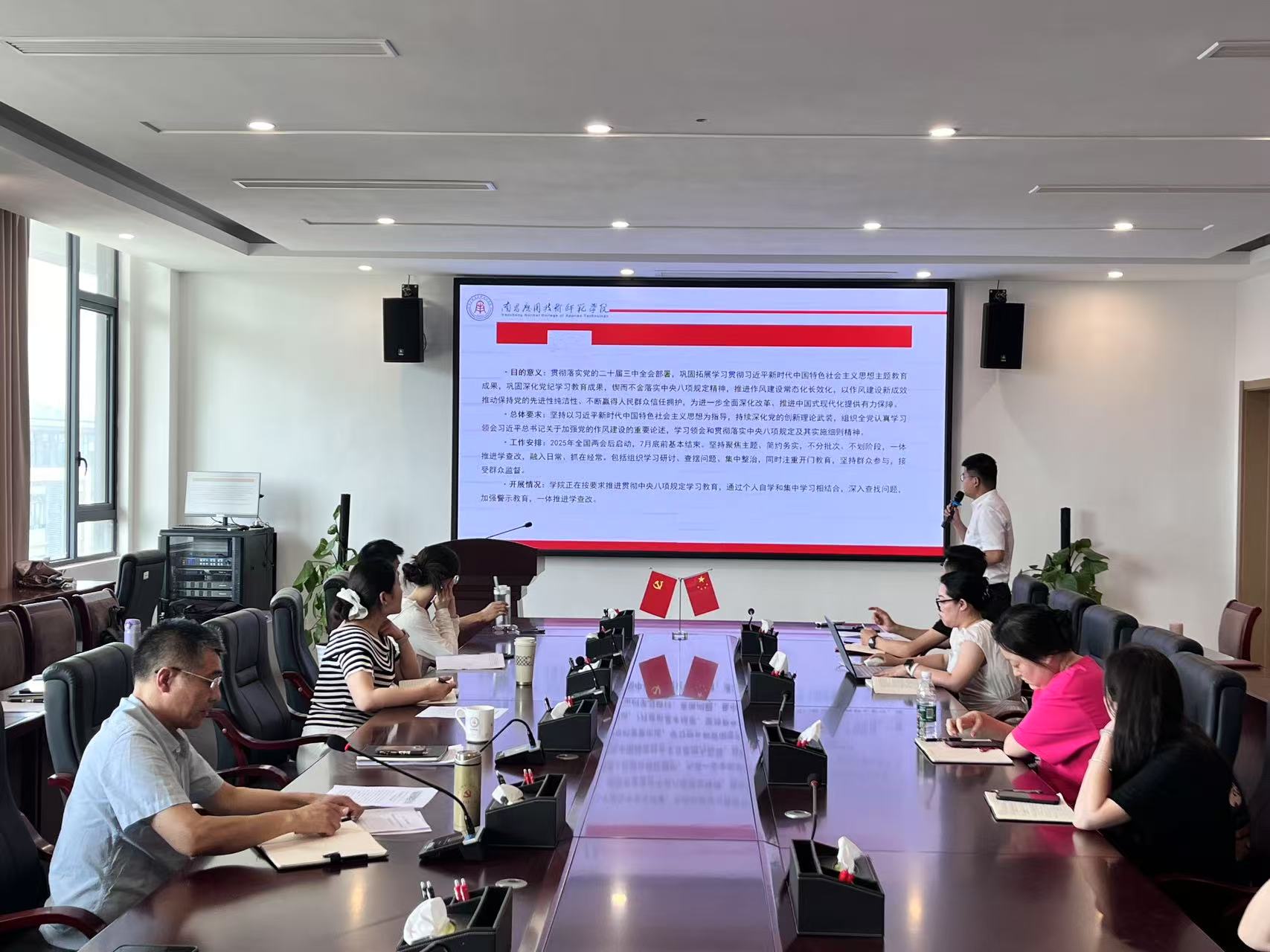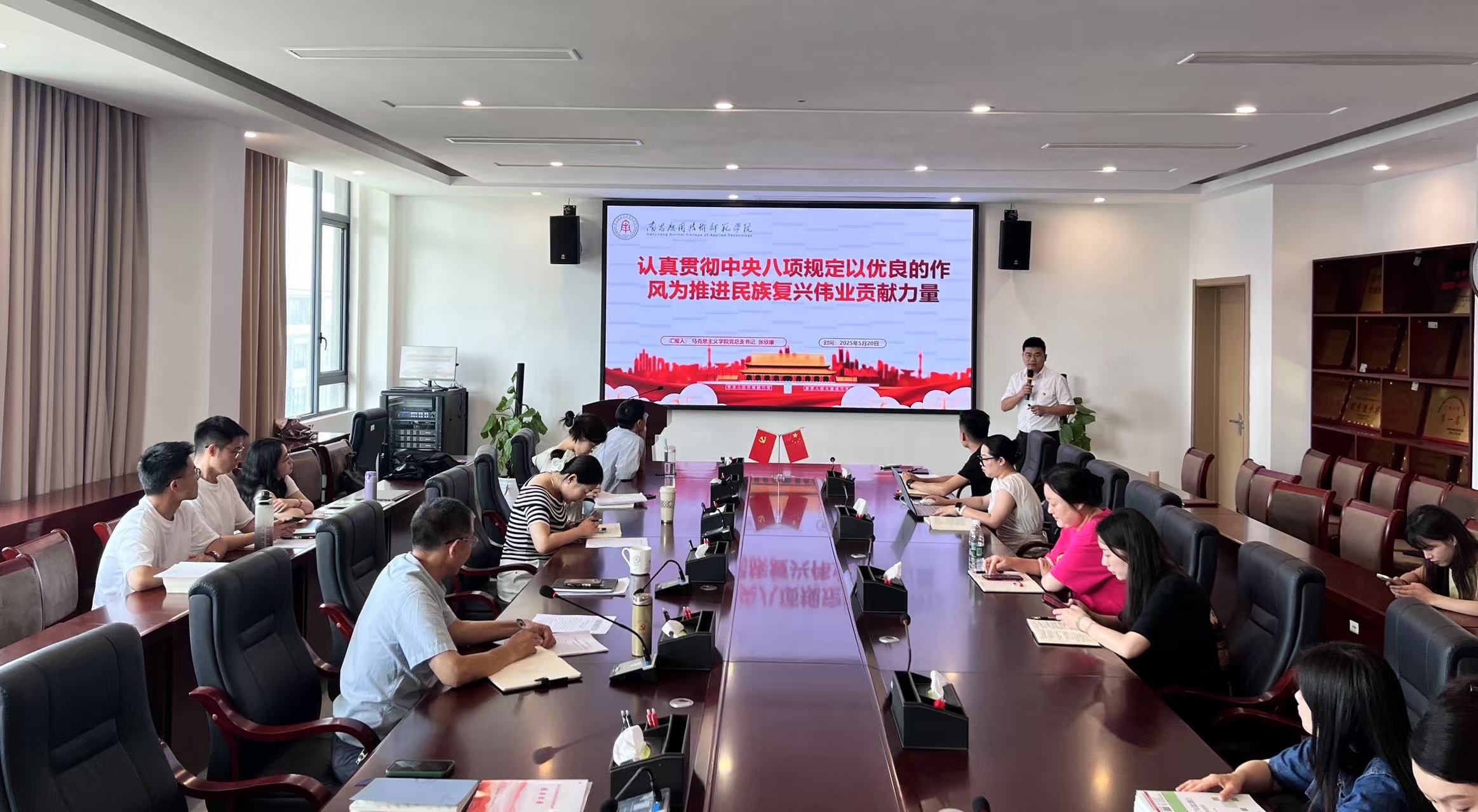 最后,支部书记刘德彰在总结发言中强调,中央八项规定不仅是纪律红线,更是党员践行初心使命的行动指南。全体党员要始终保持“作风建设永远在路上”的清醒,为马克思主义理论与教育事业发展提供作风保障。此次党课凝聚了支部党员共识,激发了奋进力量。支部将持续深化作风建设,推动中央八项规定精神落地生根。