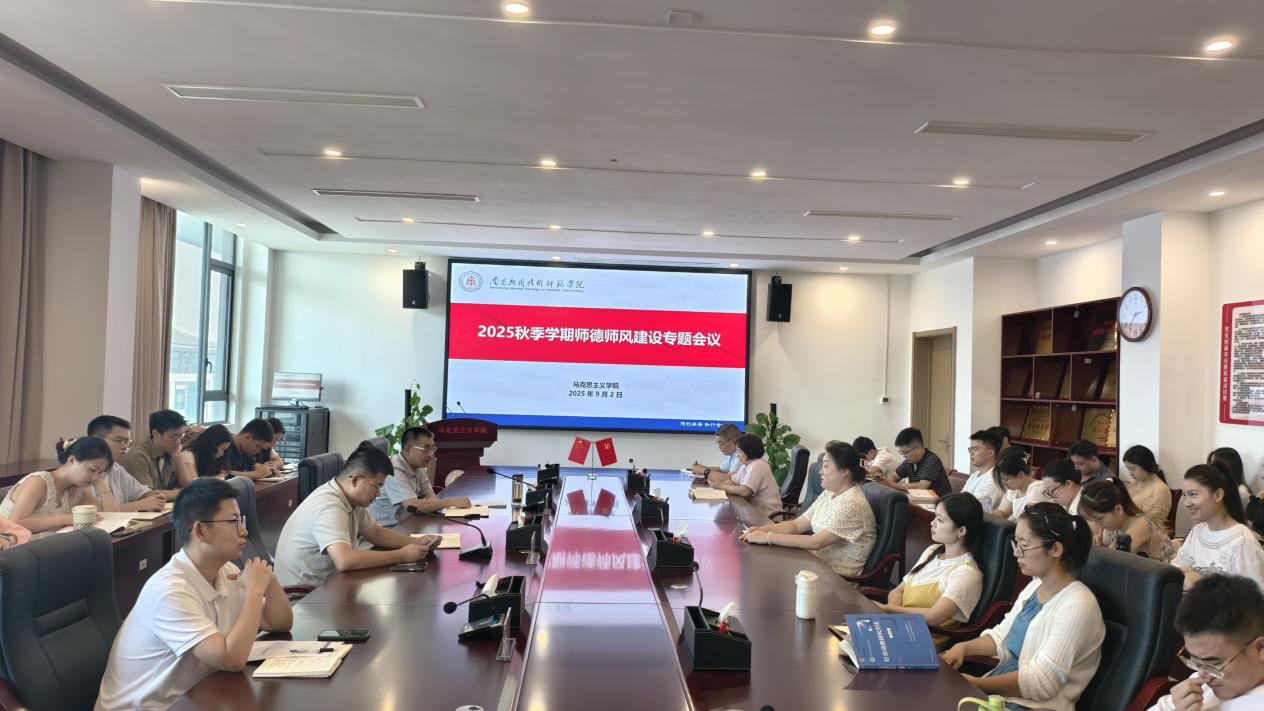为深入贯彻落实新时代教师队伍建设要求,筑牢思政课教师队伍思想根基,9月2日下午,学院召开2025年秋季学期师德师风建设专题会议。学院领导班子及全体教职工参加会议,会议由党总支书记张欣康主持。