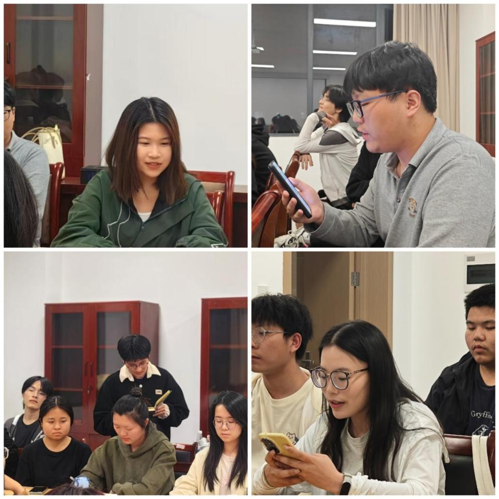 随后,同学们围绕领学内容,紧密结合近期阅读所得,各抒己见,现场气氛热烈非凡。黄宇桦、胡书源、欧阳志昌、陈嘉怡、朱芙玉、王毅、吴佳琪、邬奕、胡慧敏等众多同学积极踊跃参与发言。
