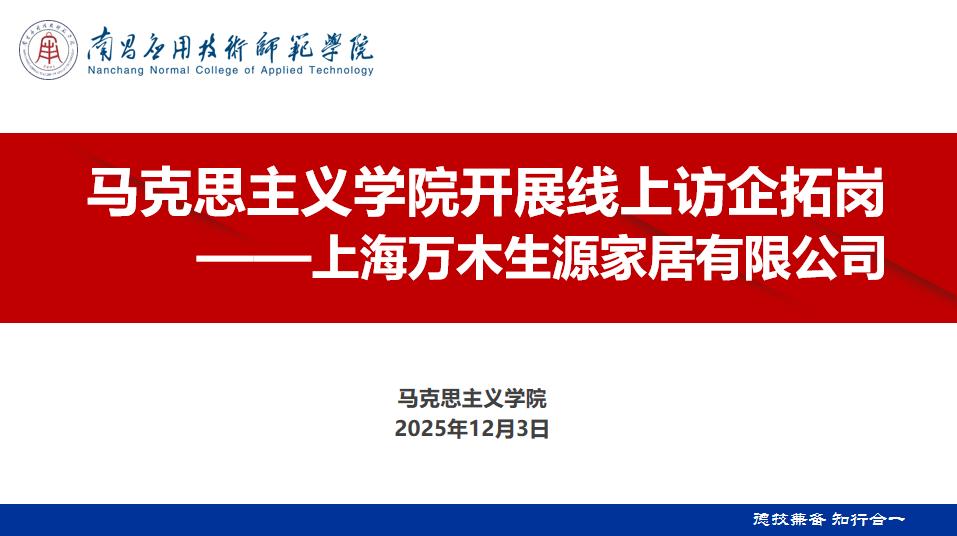 为拓宽毕业生就业渠道、深化校企协同育人,12月3日,williamhill中国官方网站联合各企业启动“线上访企拓岗”专项活动,邀请上海万木生源家居有限公司、宁波智聘企业服务有限公司2家企业参与,为2026届毕业生提供优质岗位。