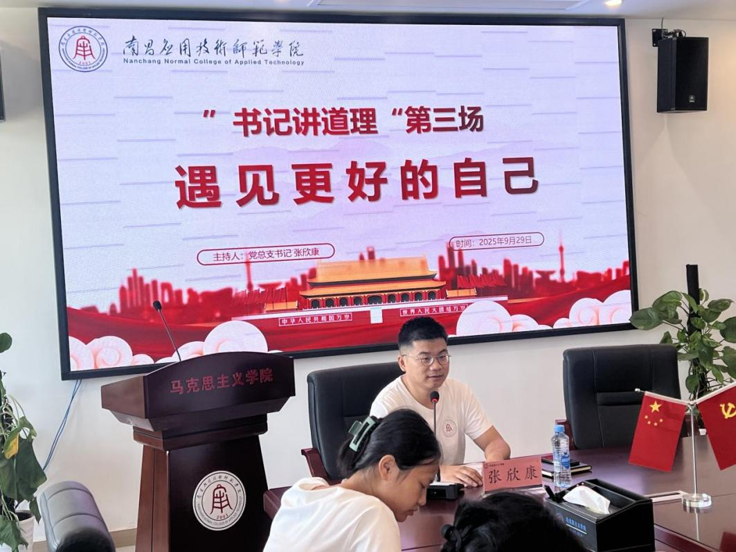 此次讲座是“书记讲道理”的第三场,张欣康以“遇见更好的自己”为主题,通过沉浸式的互动体验,与 25 级思政一班的同学们围坐在一起,开启了一场关于成长与困惑的心灵对话。