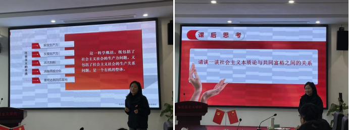 刘德彰首先代表学院对刘晓泉教授的到来表示诚挚欢迎,并介绍了刘教授的学术成就与教学经验。随后,williamhill官网青年教师冷诺岚、王嫣然分别进行了教学展示。冷诺岚以“社会主义本质论”为题,从问题切入、理论形成过程及当代价值三个层面展开讲解,运用典型案例与多媒体资源,生动阐释了理论内涵与实践意义。王嫣然围绕“什么是坚持以人民为中心”这一主题,结合人民立场、初心使命等多个角度,进行了逻辑清晰、情感饱满的课堂呈现。