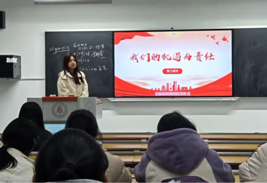 随后,周颖立足大学生成长实际,围绕“全会精神下青年学子的机遇与担当”展开分享。她指出,当代青年既是国家发展的见证者、时代进步的受益者,更应成为民族复兴的参与者、建设者。她呼吁在场同学,要筑牢思想防线,当好明辨是非的“防火墙”,夯实理想信念根基;要传递正向能量,做好中国故事的“传播者”,弘扬主流价值理念;要锚定时代坐标,争做民族复兴的“建设者”,将个人理想融入国家发展大局,让青春在全面建设社会主义现代化国家的火热实践中绽放光彩。